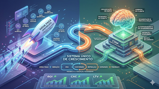 “Tráfego gera demanda. CRM captura valor. Sem gestão de relacionamento, o investimento em aquisição perde eficiência.”